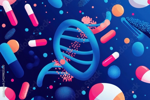 Fototapeta premium DNA strand with pills and molecules.