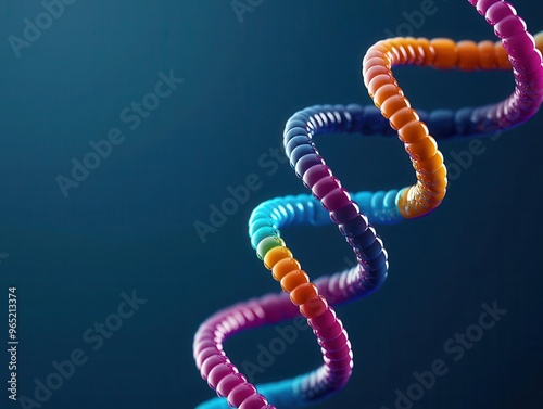 Naklejka premium DNA structure with vibrant nucleotides, molecular details, 3D illustration