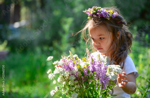 Fototapeta premium doğada sevimli kız çocuğu ve çiçekler