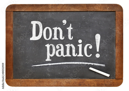 © MarekPhotoDesign.com, Obraz premium Do not panic - text on blackboard