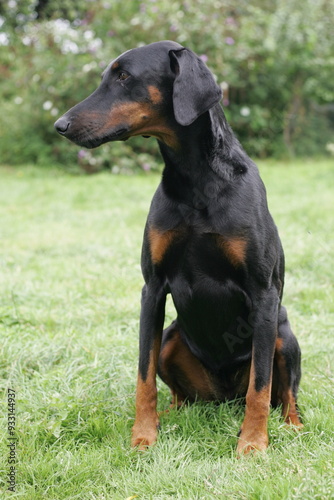 Obraz premium Doberman dogs in a garden meadow Cornwall England uk