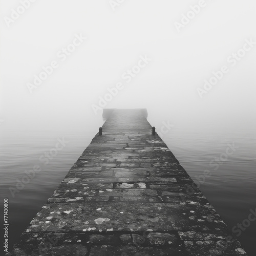 Fototapeta premium Dock in fog, outdoors, tranquil scene, landscape