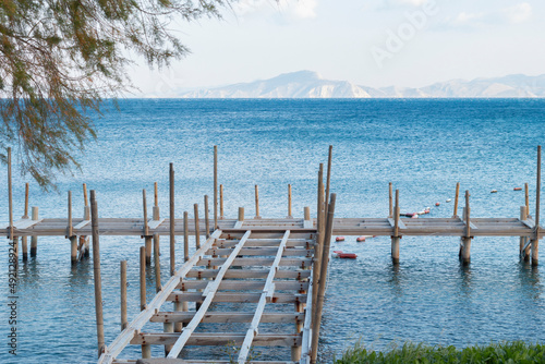 © burhan, Naklejka premium Dock under construction. Commercial boat docks built to last.