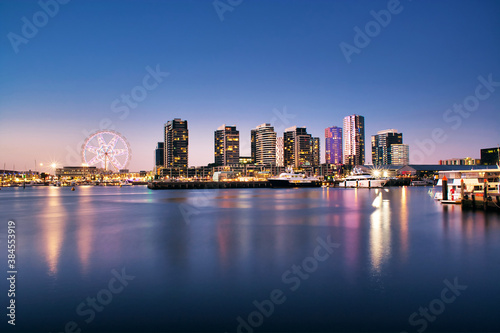 Naklejka premium Docklands Marina of Melbourne CBD and Melbourne Star Observation Wheel