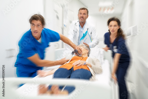 © Rido, Obraz premium Doctor and nurses running in hospital for emergency