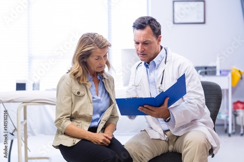 © WavebreakMediaMicro, Fototapeta premium Doctor and senior woman discussing on file