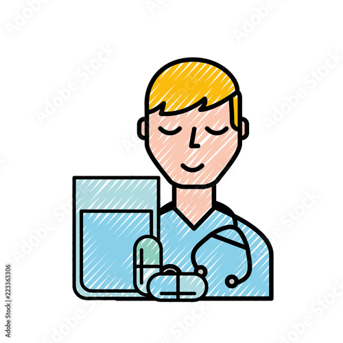 © Gstudio, Obraz premium doctor cartoon with stethoscope and water pills