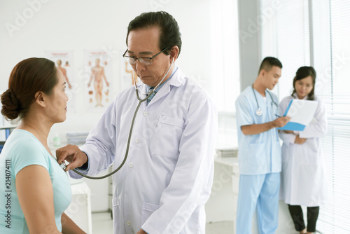 © DragonImages, Obraz premium Doctor checking heartbeat of patient