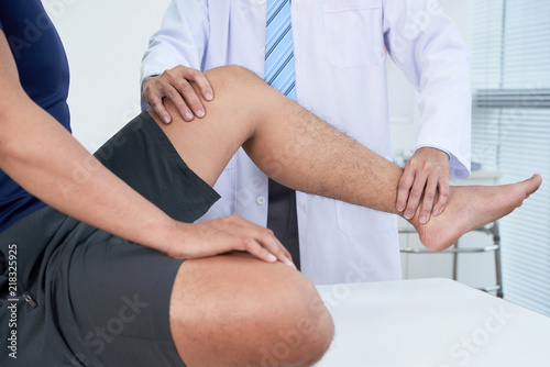 Fototapeta premium Doctor checking leg of patient with acute pain