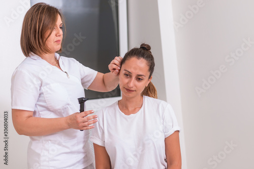 © qunica.com, Fototapeta premium Doctor checking patients ear during medical examination
