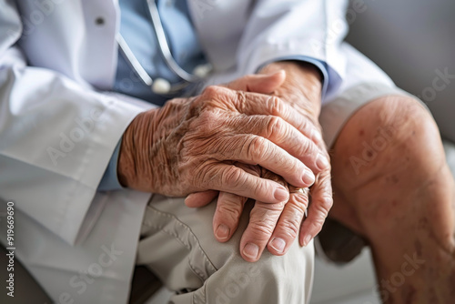 © Alberto Gonzalez , Fototapeta premium Doctor consulting with a concerned female patient holding a tablet in a clinic.