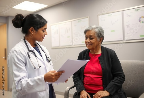 Fototapeta premium Doctor consulting with elderly patient in a healthcare office during a...