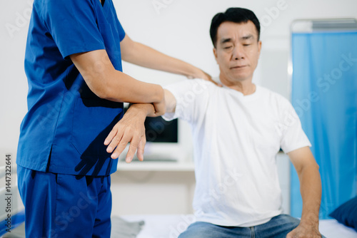 © Nuttapong punna, Obraz premium Doctor consulting with patient Back problems Physical therapy concept.