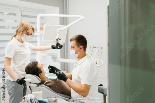 © dsheremeta, Obraz premium Doctor Dentist with an assistant work in a dental clinic.