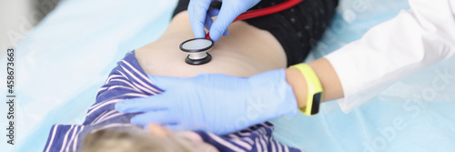 © H_Ko, Fototapeta premium Doctor diagnoses lungs with stethoscope of little girl
