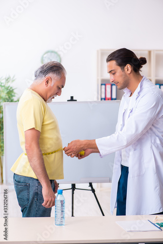 Fototapeta premium Doctor dietician giving advices to fat overweight patient