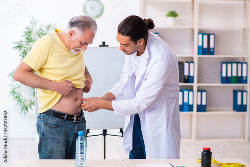 Fototapeta premium Doctor dietician giving advices to fat overweight patient