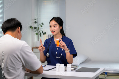 Fototapeta premium Doctor discussing medicine with patient during consultation