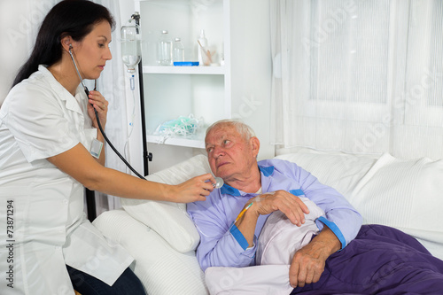 © Mediteraneo, Obraz premium Doctor examining a patient in hospital bed