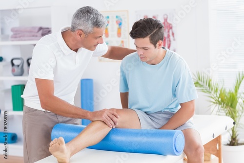 © WavebreakMediaMicro, Obraz premium Doctor examining his patient leg