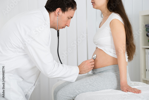 Fototapeta premium Doctor Examining Pregnant Woman In Clinic