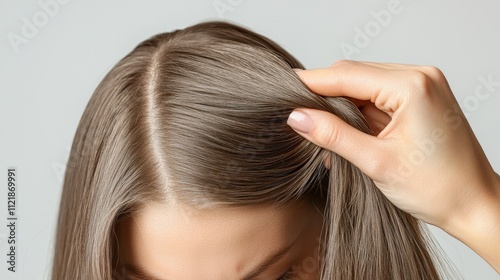 Naklejka premium Doctor examining scalp for signs of anemia, nutrient deficiency and iron deficiency linked to hair loss