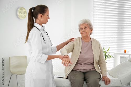 © New Africa, Obraz premium Doctor examining senior patient in modern office