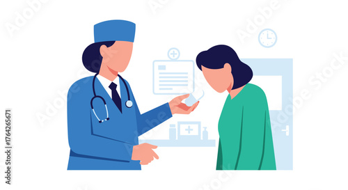 © patryk, Obraz premium Doctor gives patient a small white pill during medical consultation in clinic examination room