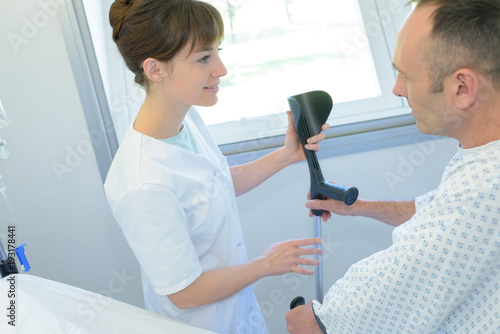 Obraz premium doctor helping patient with the crutch