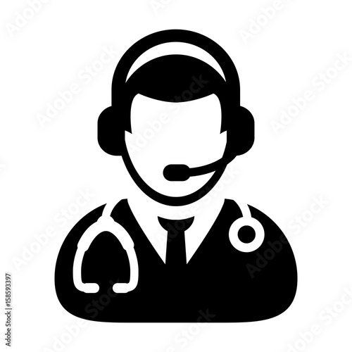 © TukTuk Design, Obraz premium Doctor Icon Vector Symbol With Online Support Wearing Headphone For Contacting Physician Consultation Specialist Avatar In Glyph Pictogram illustration