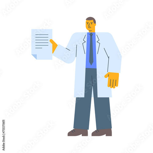 © yuriytsirkunov, Obraz premium Doctor in robe holds document and smiles