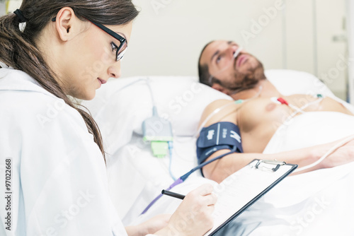 © santypan, Fototapeta premium Doctor is caring a sick person in hospital
