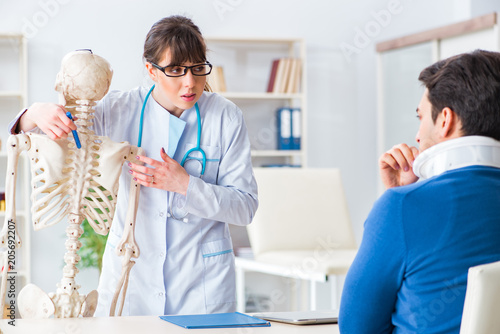 Fototapeta premium Doctor is explaining to patient with neck injury