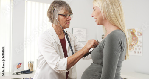 Fototapeta premium Doctor listening to pregnant woman's heart