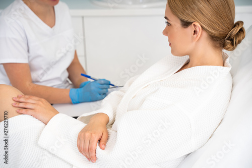 © Yakobchuk Olena, Obraz premium Doctor making notes and female client looking at it