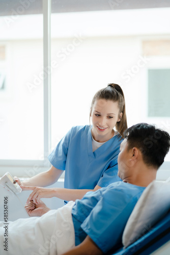 © NINENII, Obraz premium doctor nurse checking patient blood pressure.