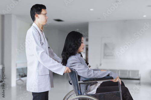 © Creativa Images, Obraz premium Doctor pushing patient on wheelchair