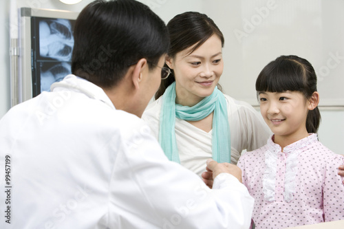 Obraz premium Doctor speaking with his young patient and her mother