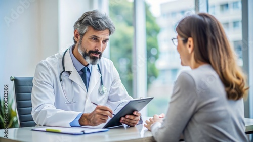 Fototapeta premium Doctor taking notes while listening to patient.