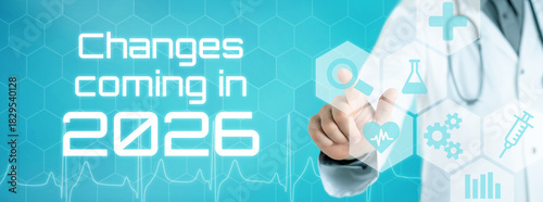 © Zerbor, Obraz premium Doctor touching an icon on a futuristic interface - Changes coming in 2026