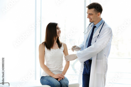 Fototapeta premium Doctor vaccinating female patient in clinic
