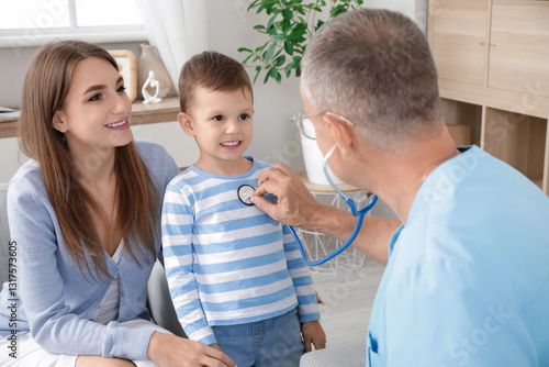 © Pixel-Shot, Fototapeta premium Doctor visiting his little patient at home
