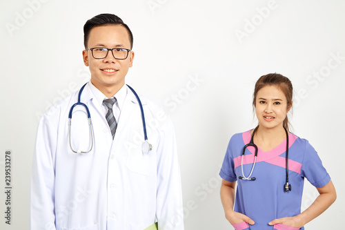 Fototapeta premium Doctor with nurse on white background