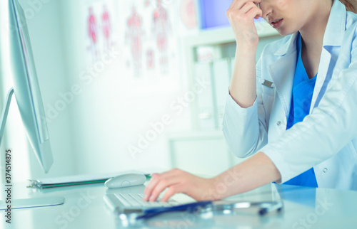 © lenets_tan, Obraz premium Doctor woman tired. Medicine and over work concept