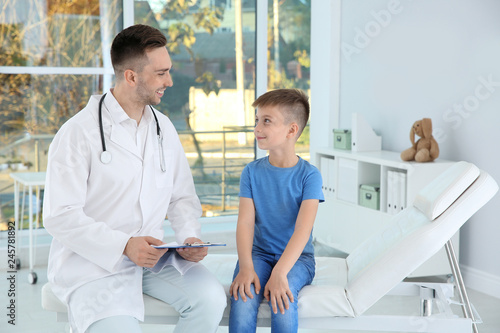 Fototapeta premium Doctor working with little patient in hospital
