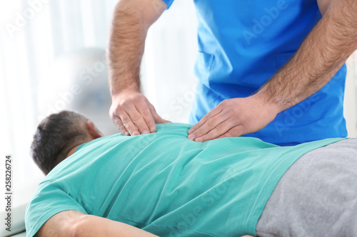 Obraz premium Doctor working with patient in hospital, closeup. Rehabilitation massage