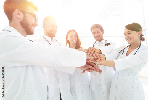 Fototapeta premium Doctors and nurses in a medical team stacking hands