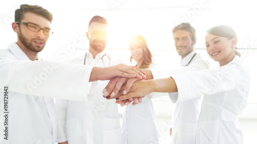 Fototapeta premium Doctors and nurses in a medical team stacking hands