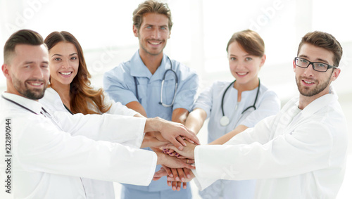 Fototapeta premium Doctors and nurses stacking hands. concept of mutual aid.