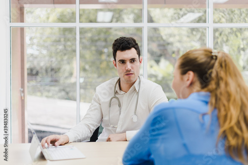 Fototapeta premium Doctors are explaining and analyzing the patient's illness. The doctor put a...